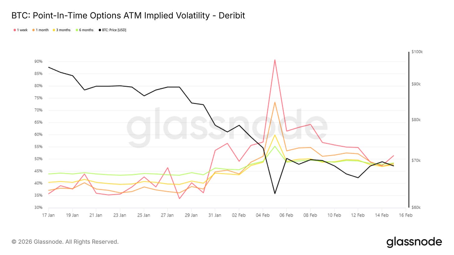 Last week was about rupture. This week is about reconstruction. The violent selloff that sliced through long-standing support levels forced a full repricing of risk across the derivatives complex. Implied volatility surged to crisis territory. Put skew reached multi-year extremes. Liquidations cascaded mechanically through the system. That phase was both emotional and structural, driven as much by forced positioning as by narrative.