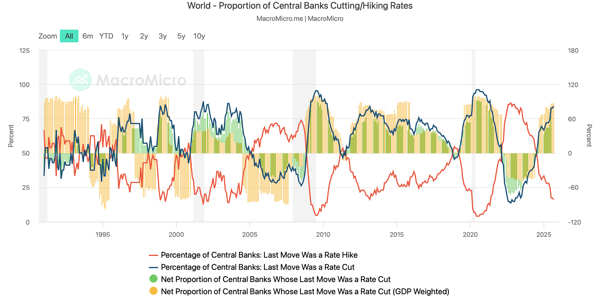 Global liquidity remains strong. 84% of central banks are cutting. rates.